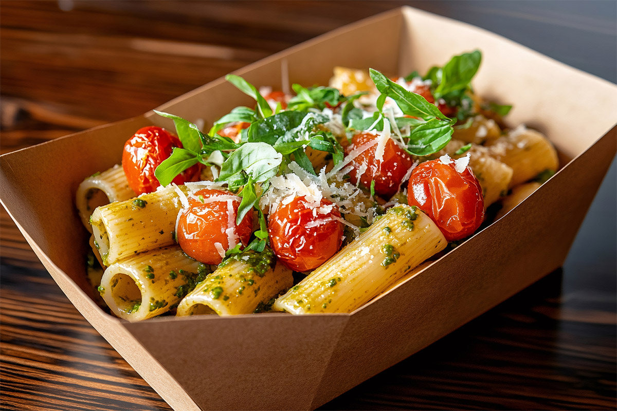 Street Pasta offers various pasta dishes prepared fresh to order live on the spot.